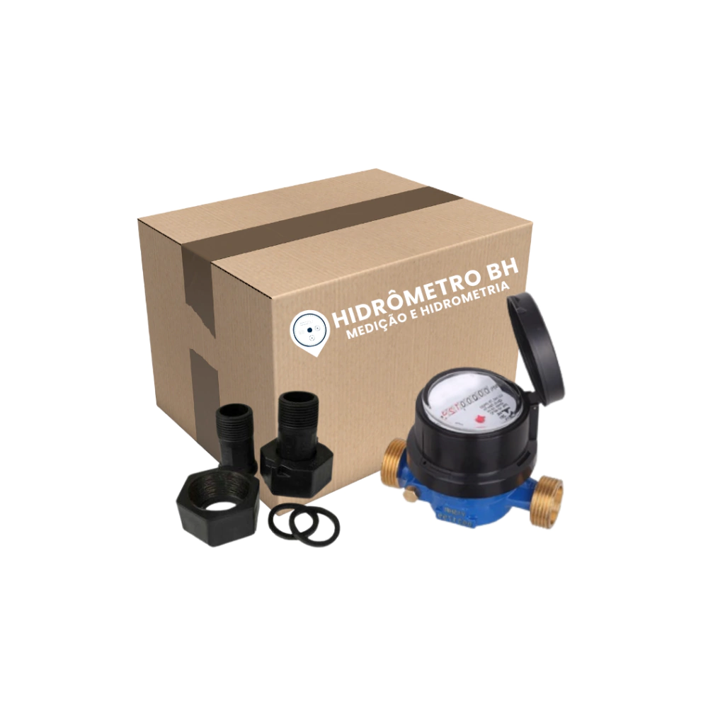 Hidrômetro Unijato de 3/4" x 115mm Vazão Nominal de 1,5m³/h Vazão Máxima de 3,0m³/h Classe B com Conexões PP Curto